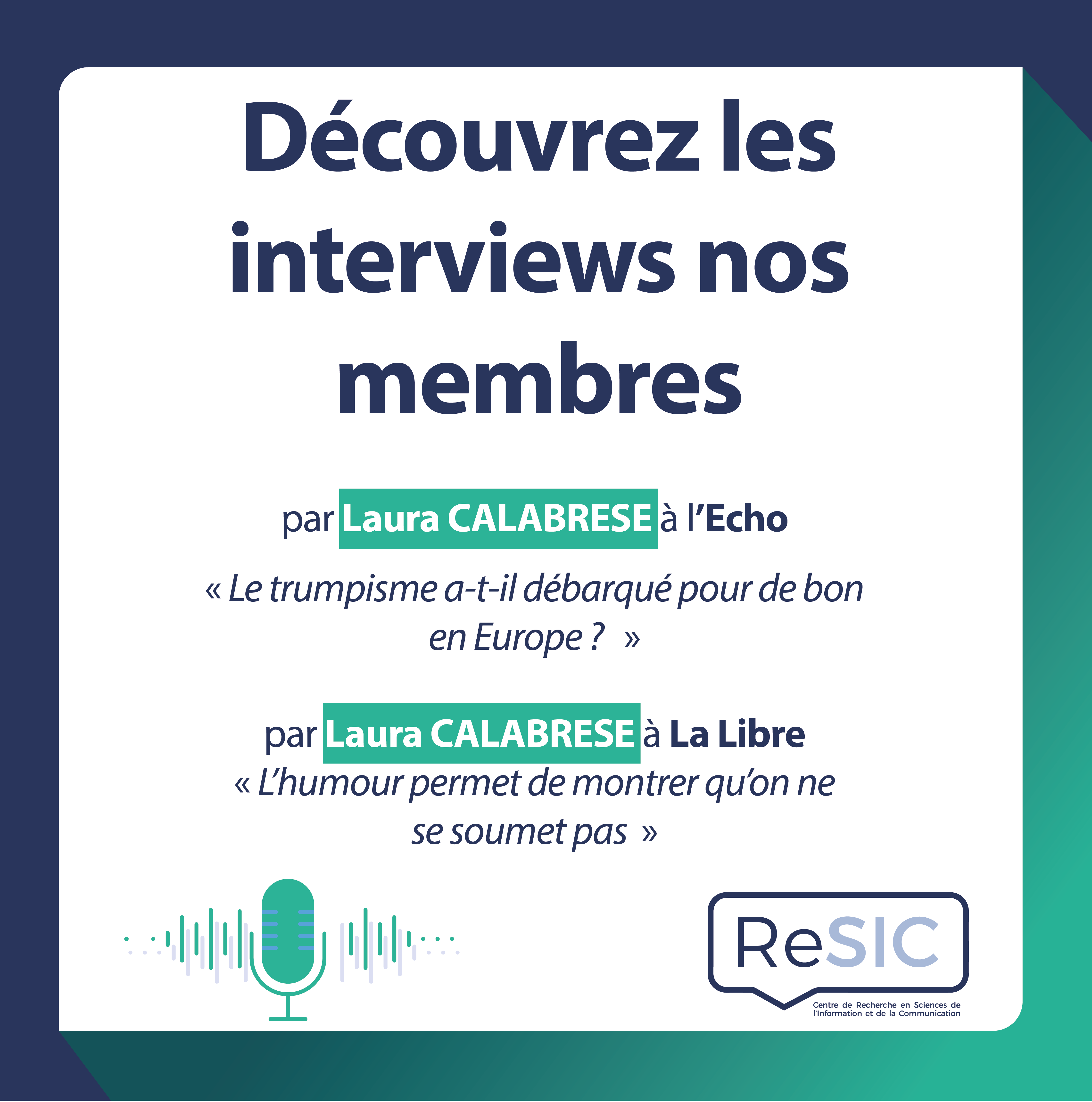 1) Interview accordée à l'Echo « Le trumpisme a-t-il débarqué pour de bon en Europe ? ». 2) Interview accordée à La Libre « L’humour permet de montrer qu’on ne se soumet pas »