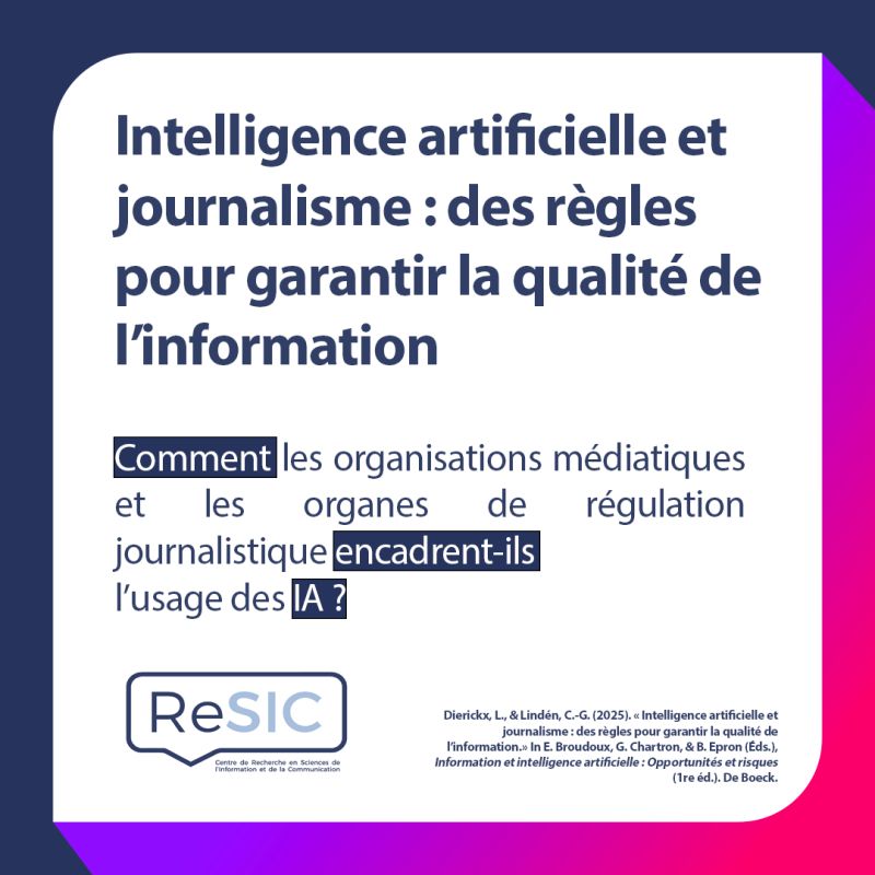 Références :  "Intelligence artificielle et journalisme : des règles pour garantir la qualité de l’information" par Laurence Dierickx dans le livre "Information et intelligence artificielle" dirigé par Evelyne Broudoux, Ghislaine Chartron et Benoit Epron chez De Boeck Supérieur.