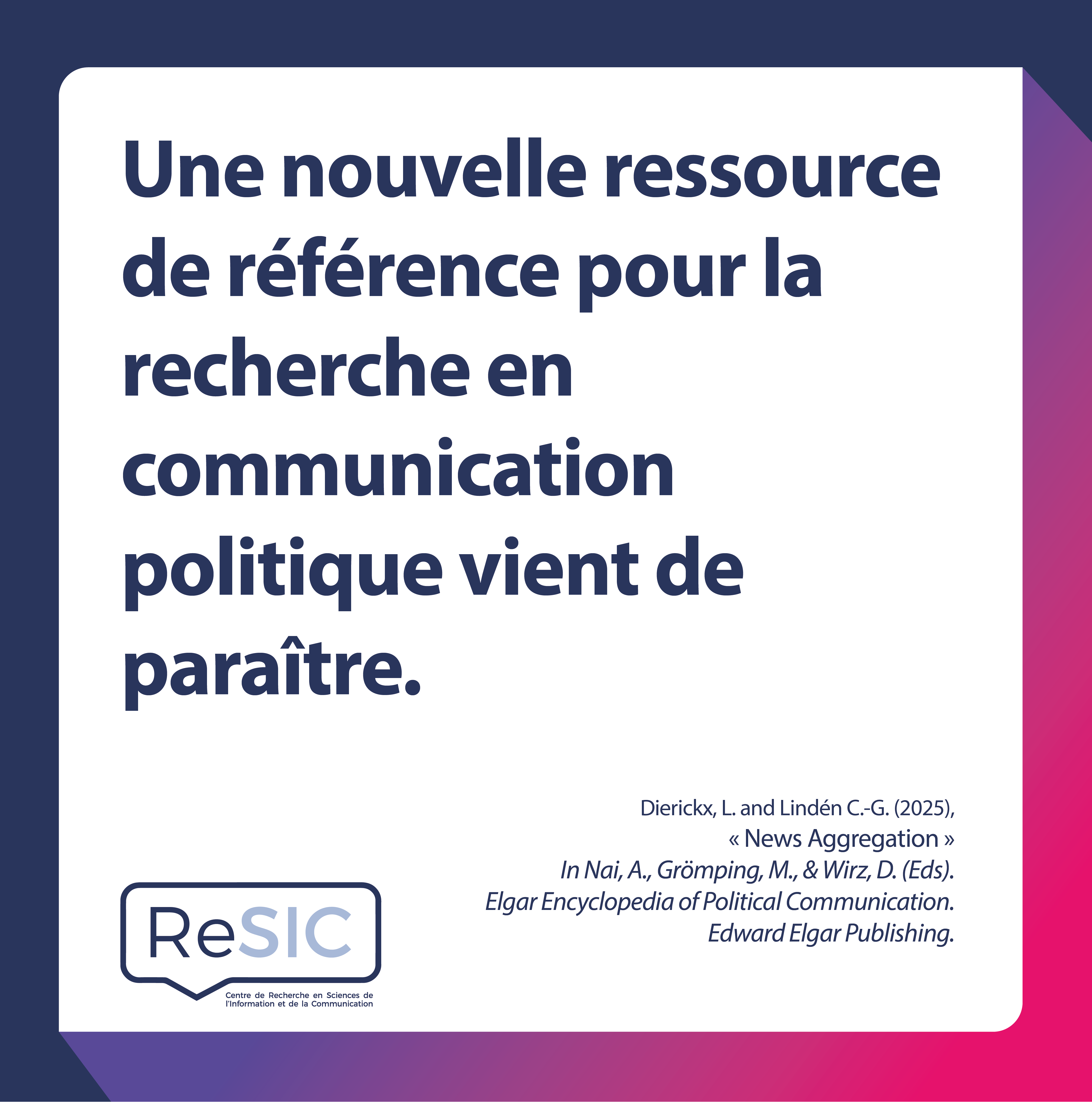 Références : Dierickx, L. and Lindén C.-G. (2025), News Aggregation. In Nai, A., Grömping, M., & Wirz, D. (Eds). Elgar Encyclopedia of Political Communication. Edward Elgar Publishing.